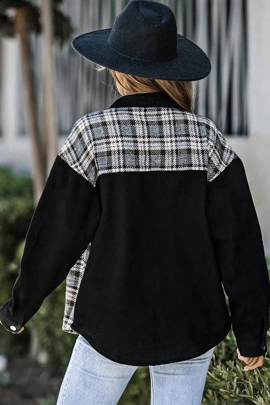 Plaid Pocketed Button Up Denim Jacket